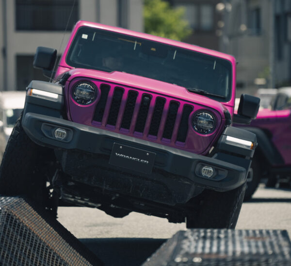 先頭車にJeep Duckを載せたピンクのWrangler(ラングラー)3台が全国を周り、