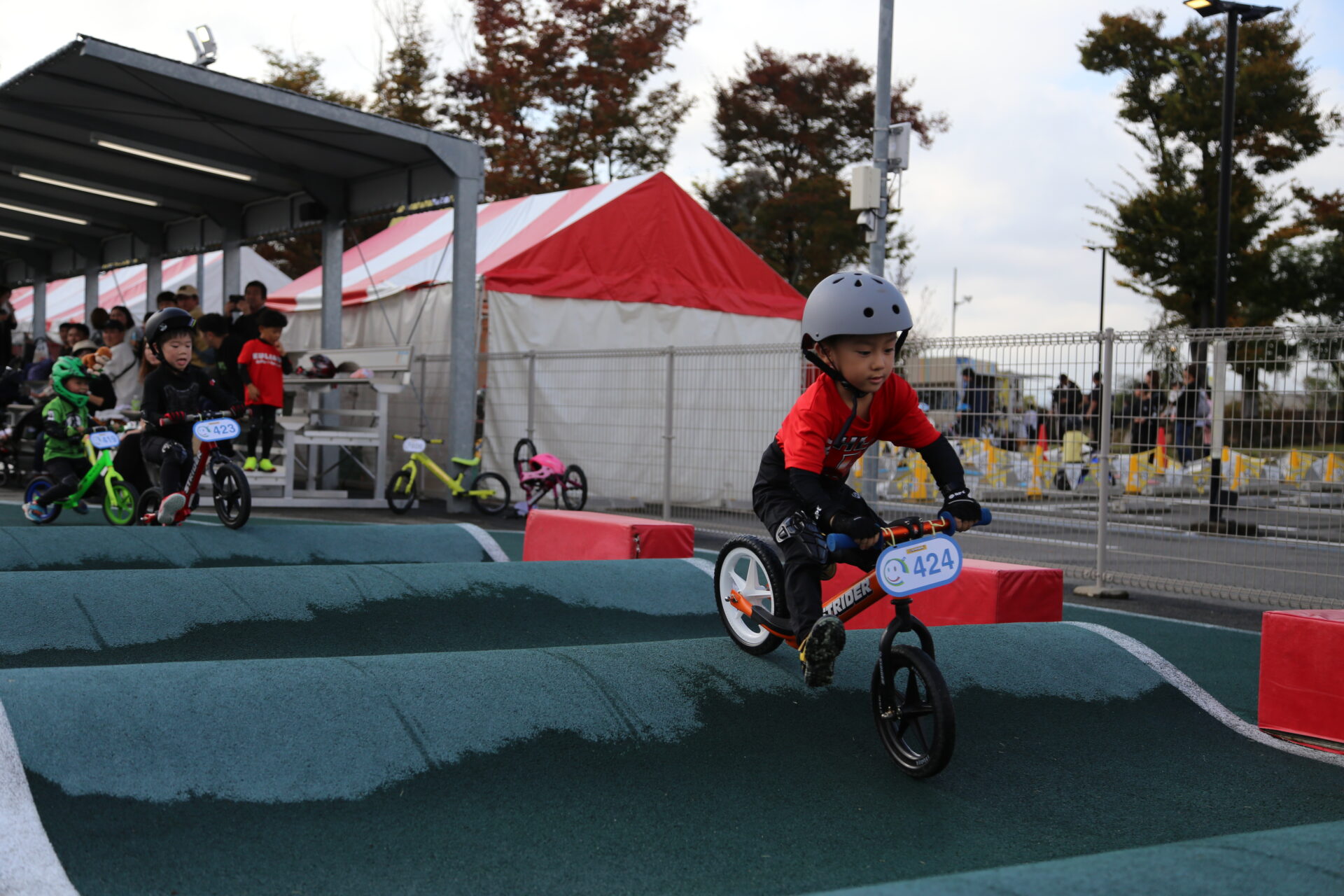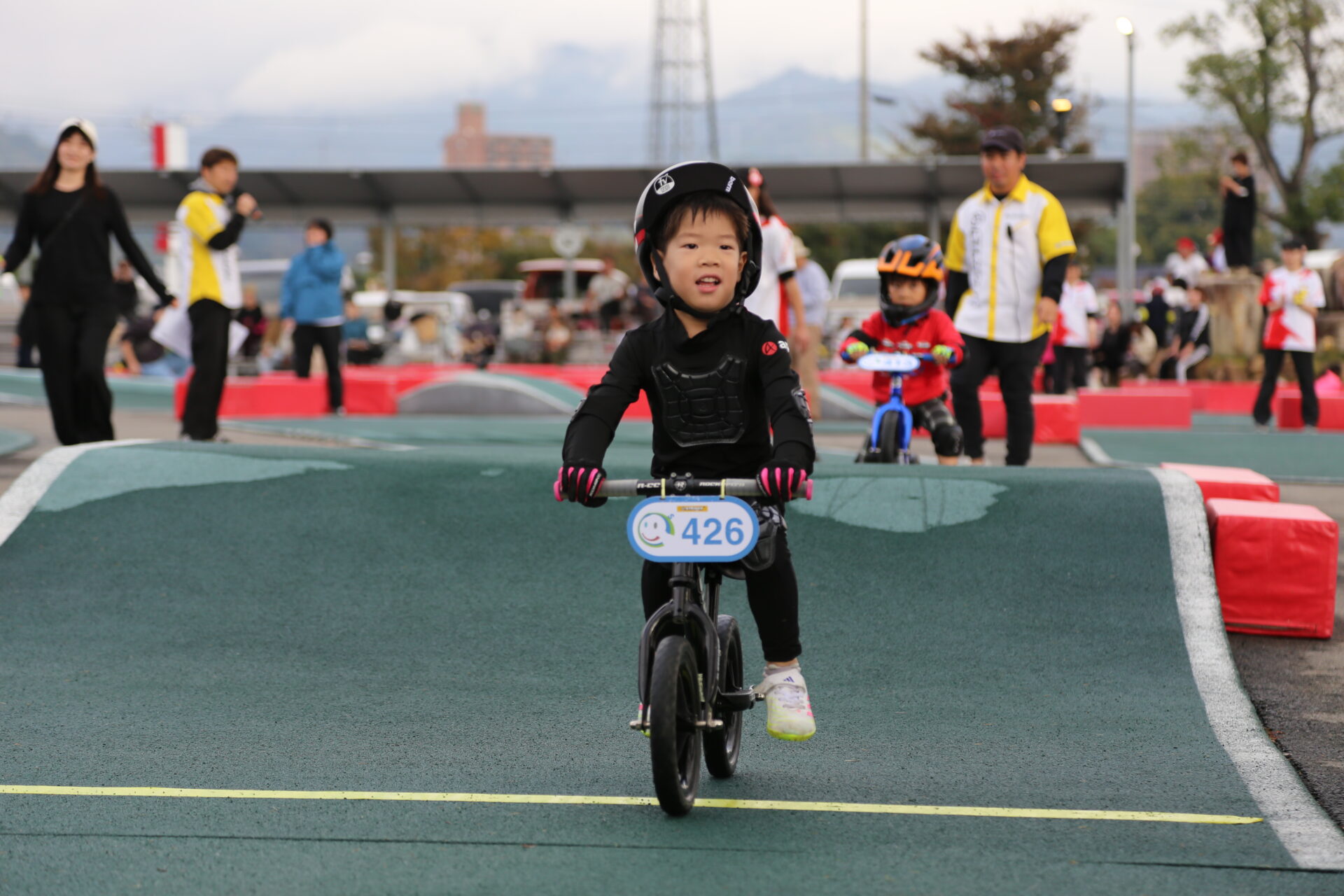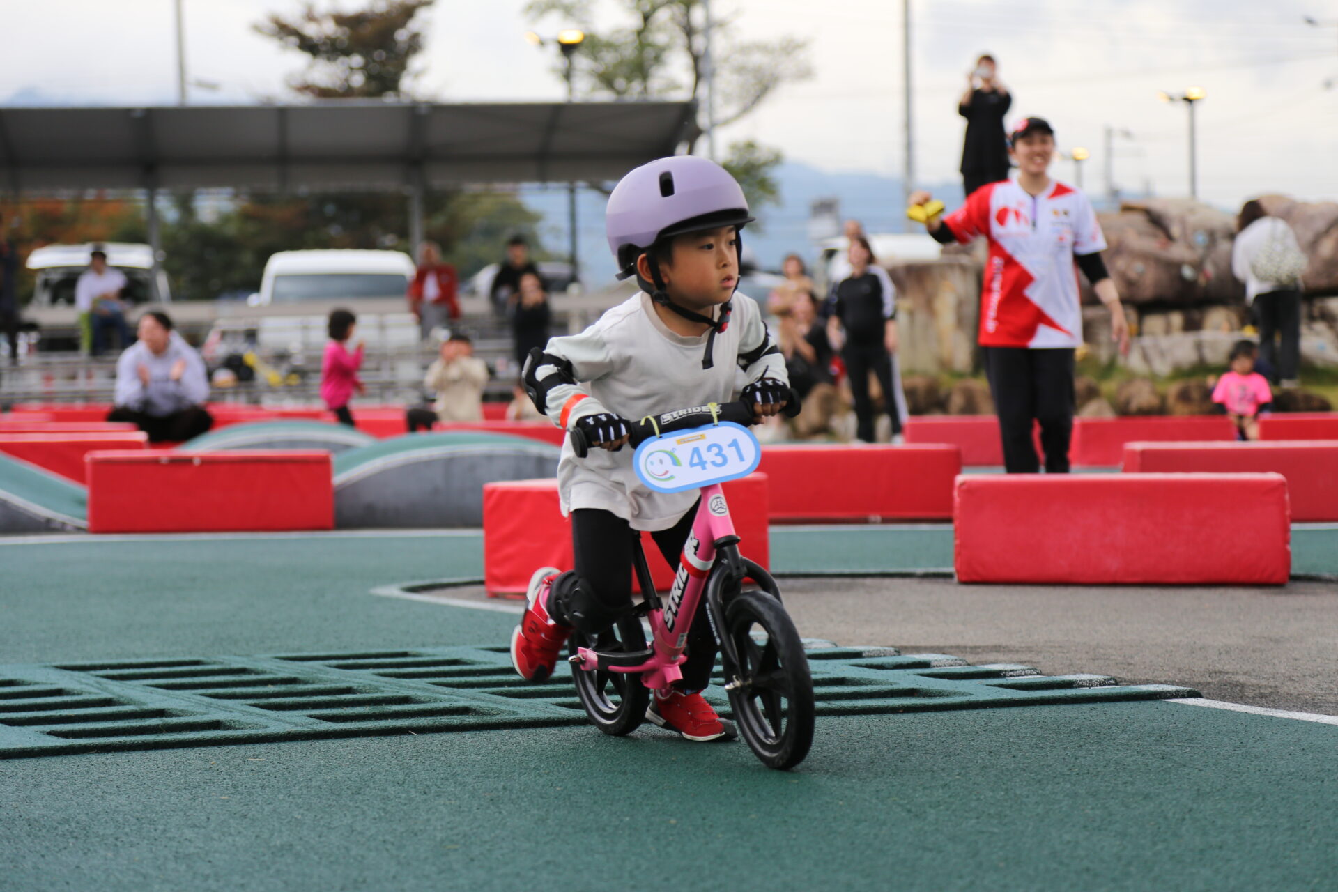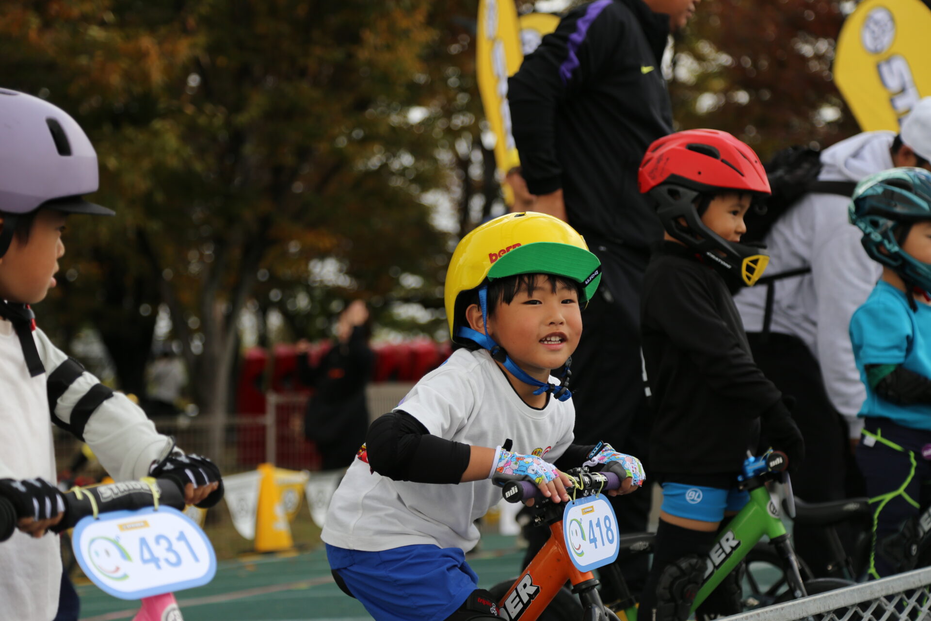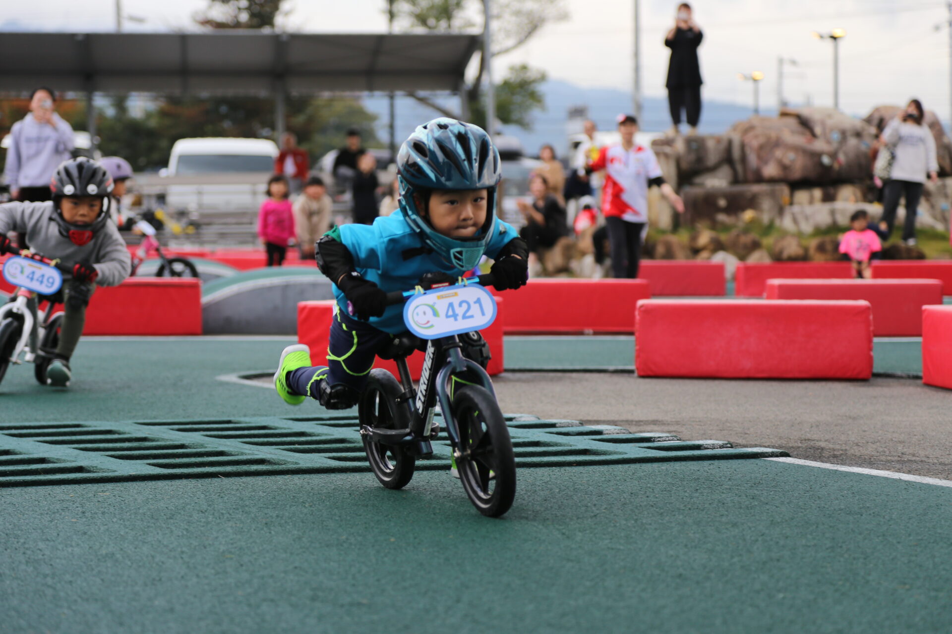 小さなハンドルをぎゅっと握って、「レディ、セット、ゴー!」。最初のひと蹴りをみんなで応援し、笑顔があふれた時間。会場いっぱいに「がんばれー!」の声が響きました。