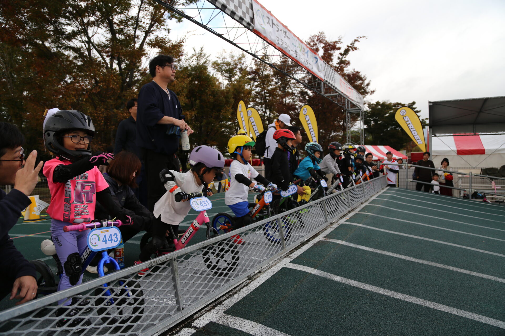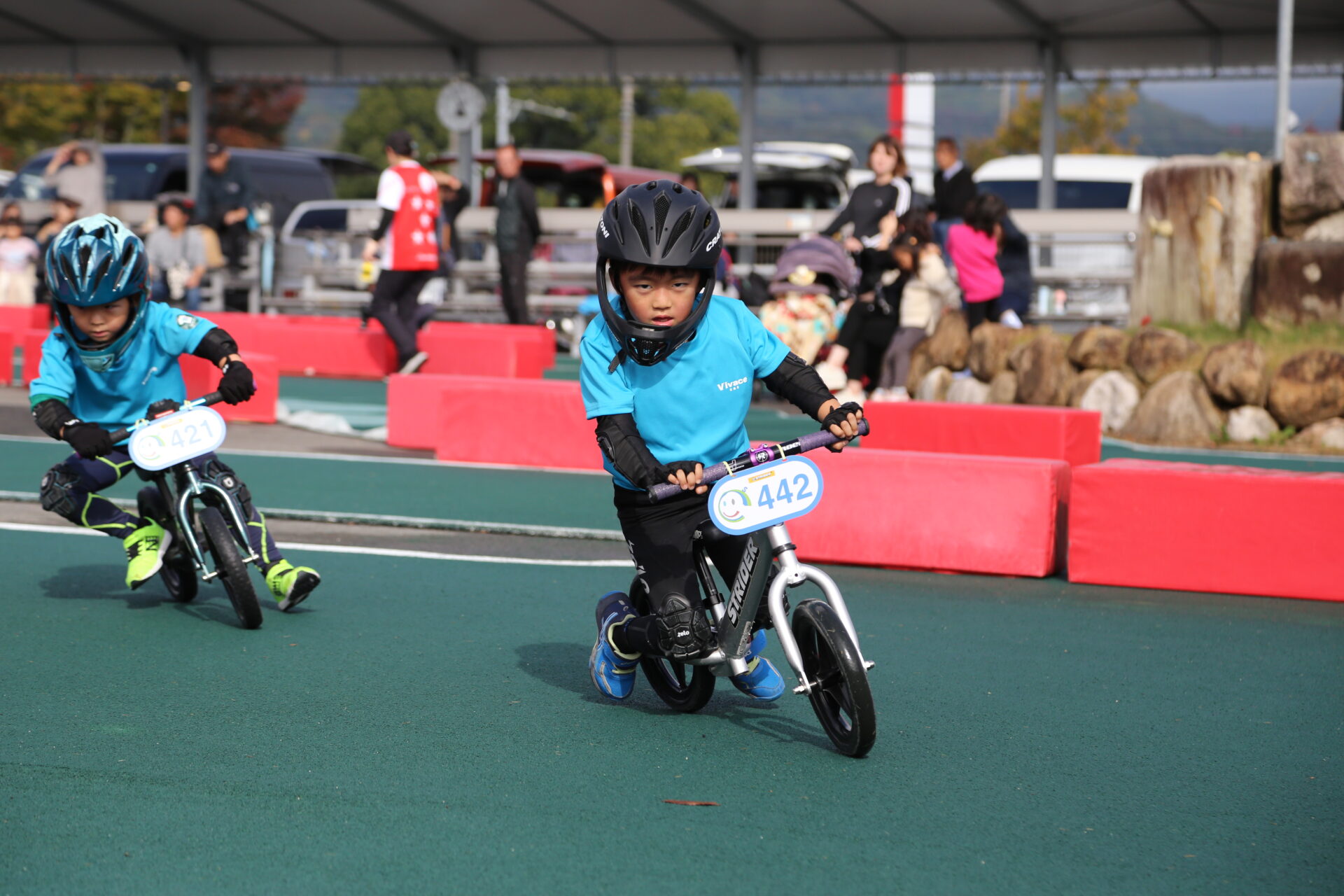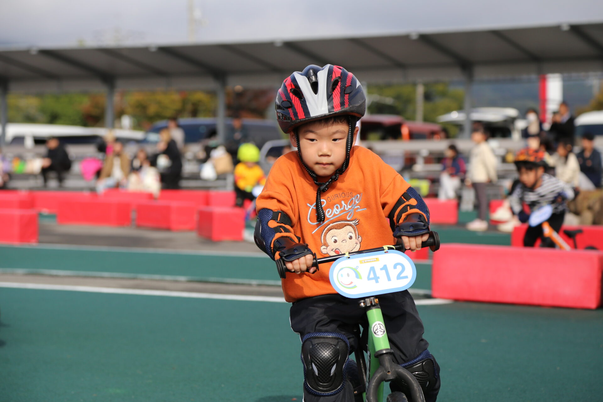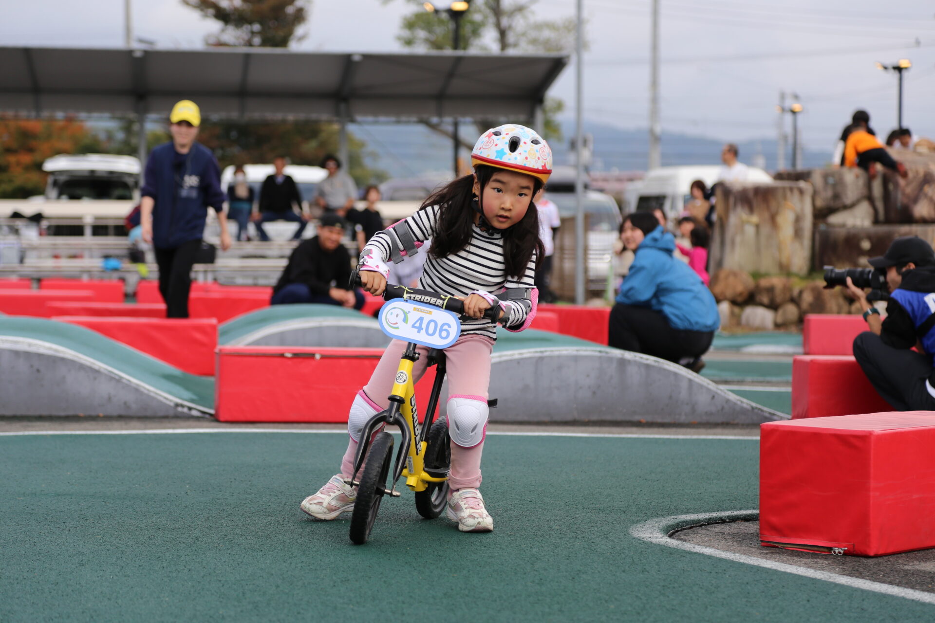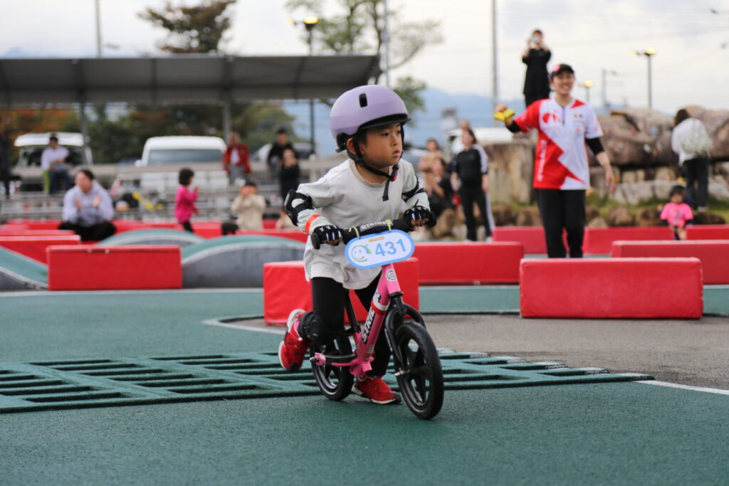 小さなハンドルをぎゅっと握って、「レディ、セット、ゴー!」。最初のひと蹴りをみんなで応援し、笑顔があふれた時間。会場いっぱいに「がんばれー!」の声が響きました。