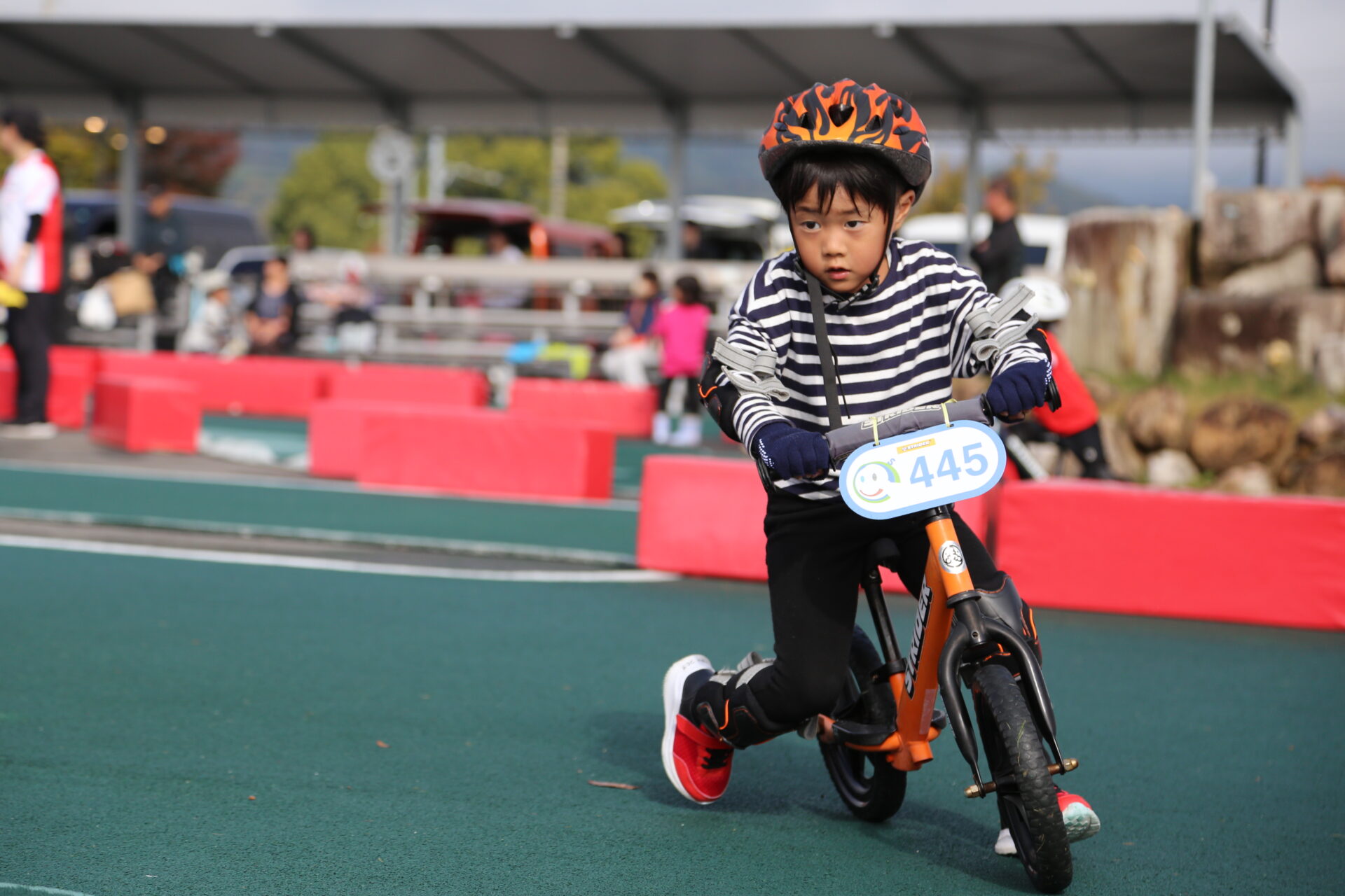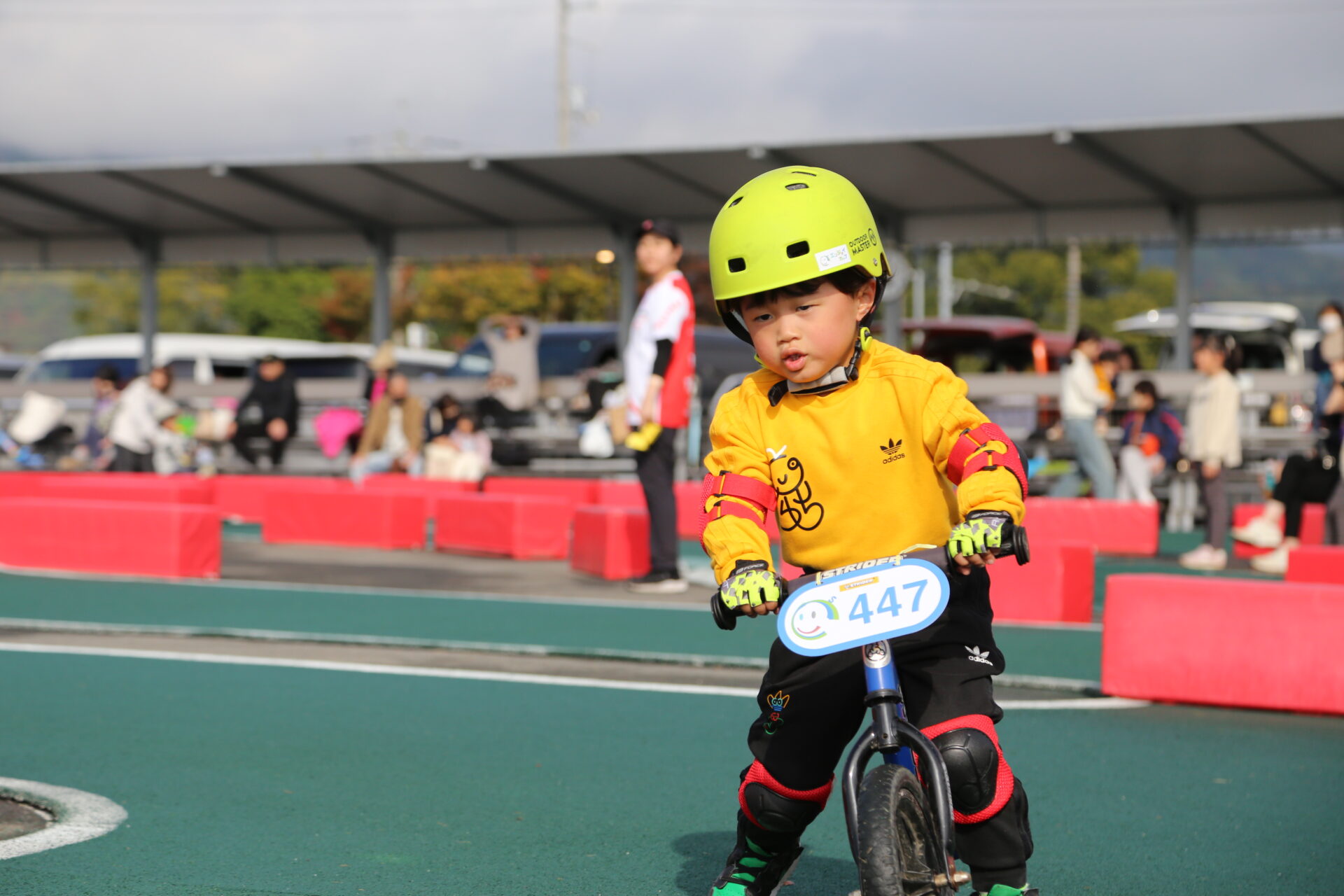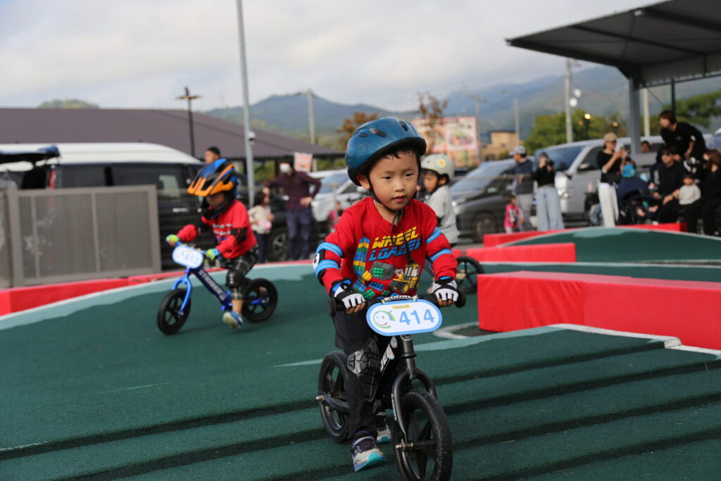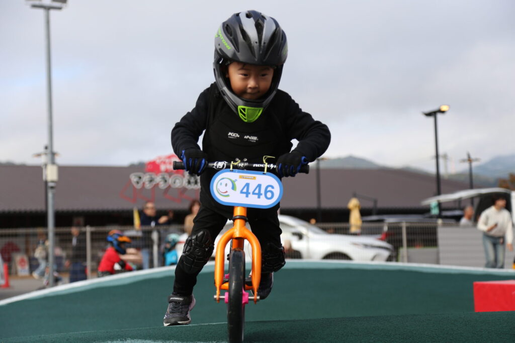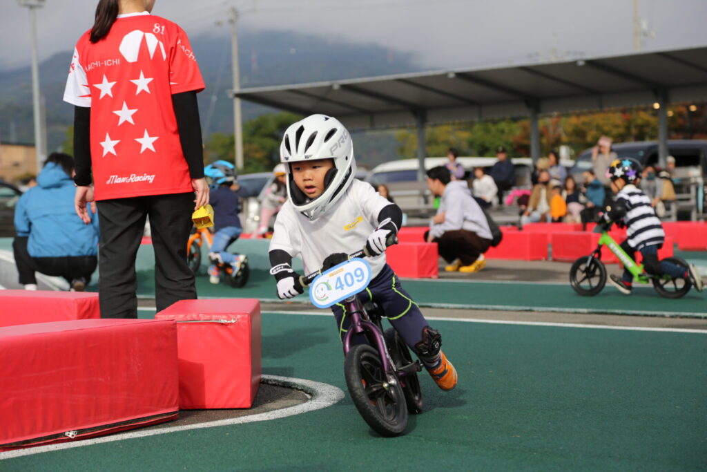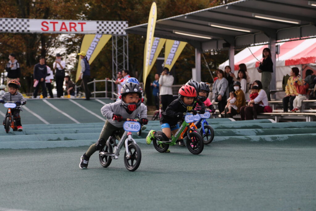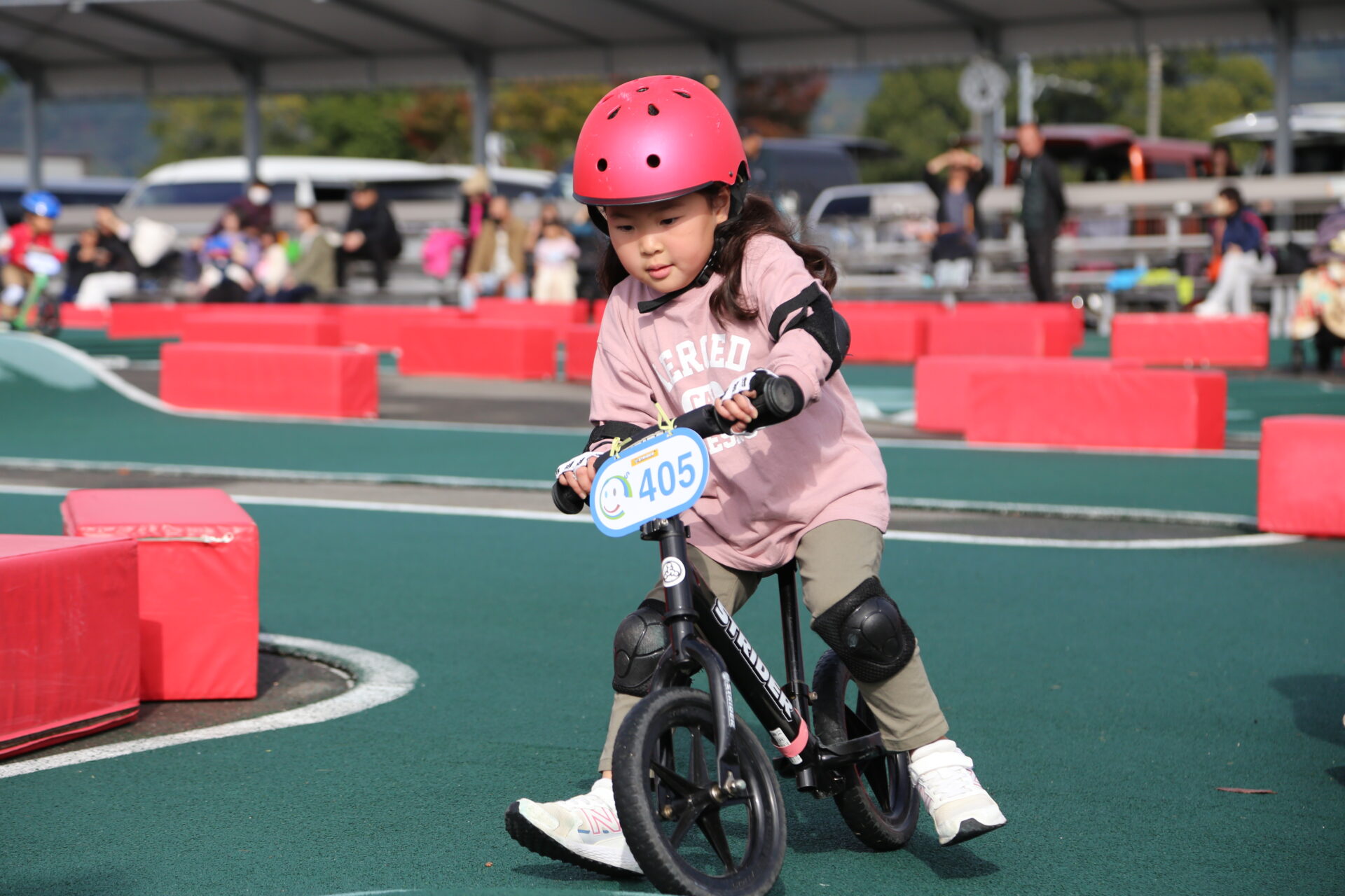小さなハンドルをぎゅっと握って、「レディ、セット、ゴー!」。最初のひと蹴りをみんなで応援し、笑顔があふれた時間。会場いっぱいに「がんばれー!」の声が響きました。