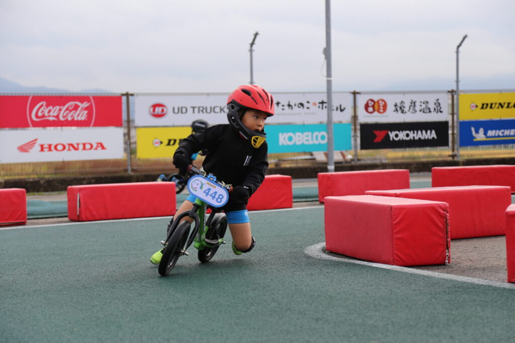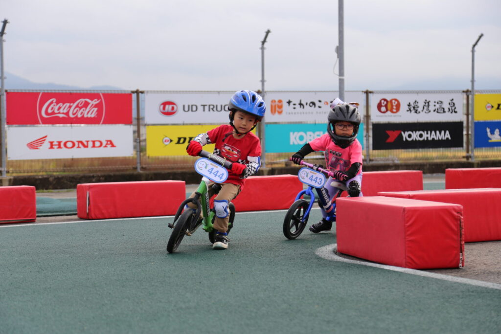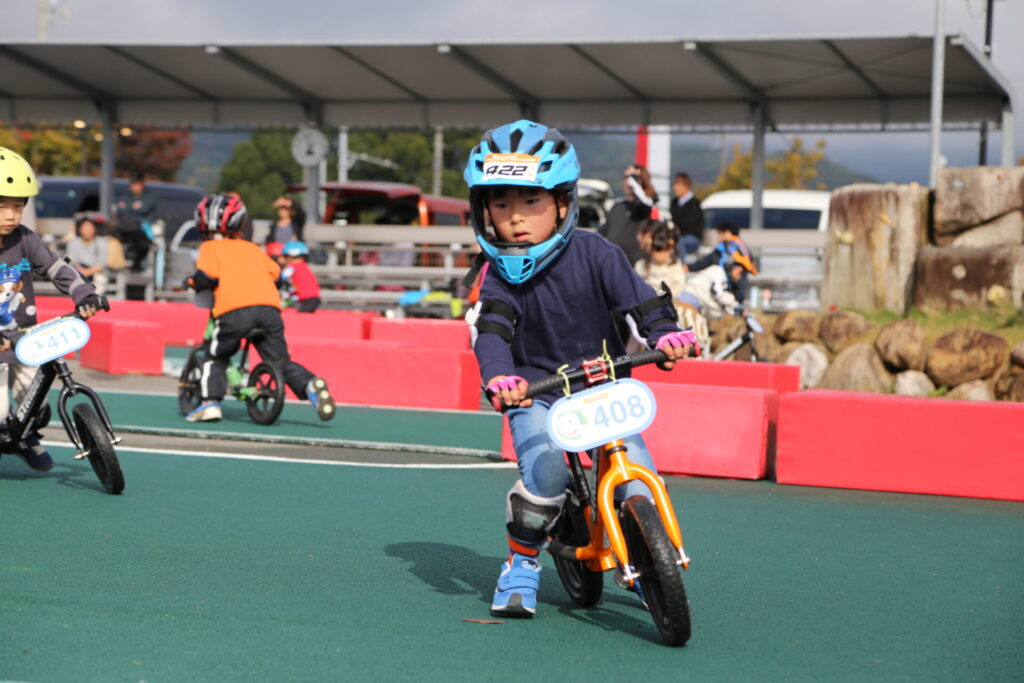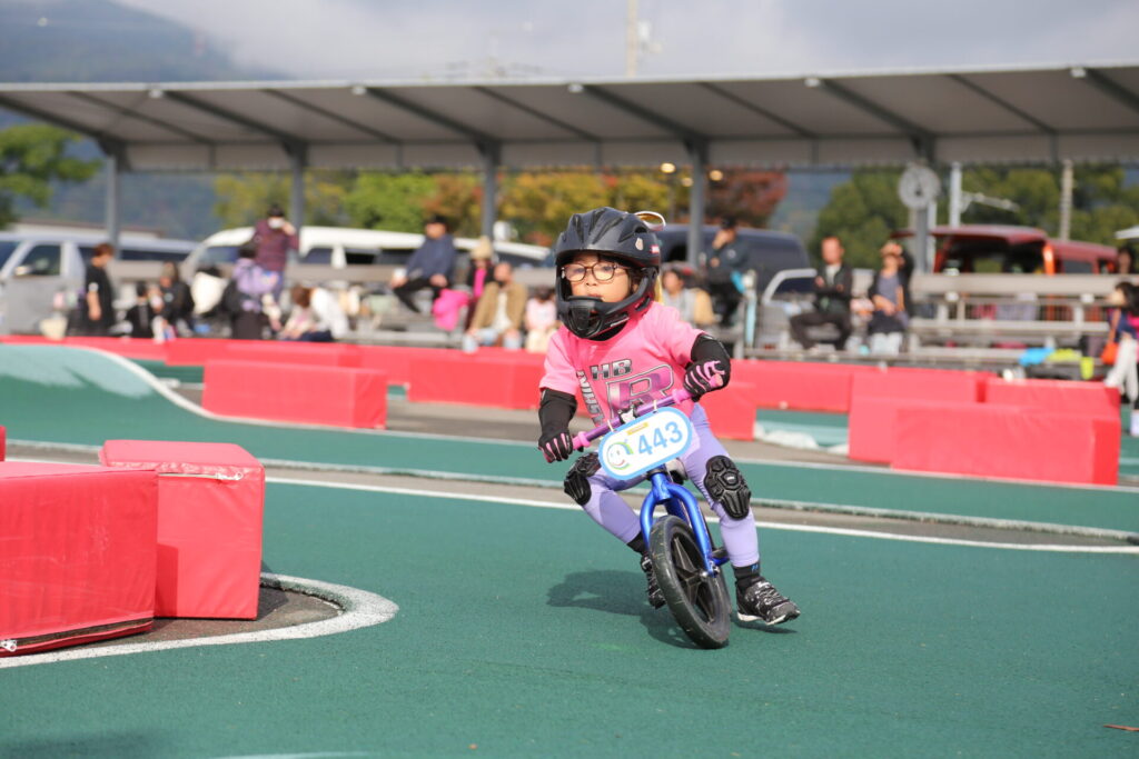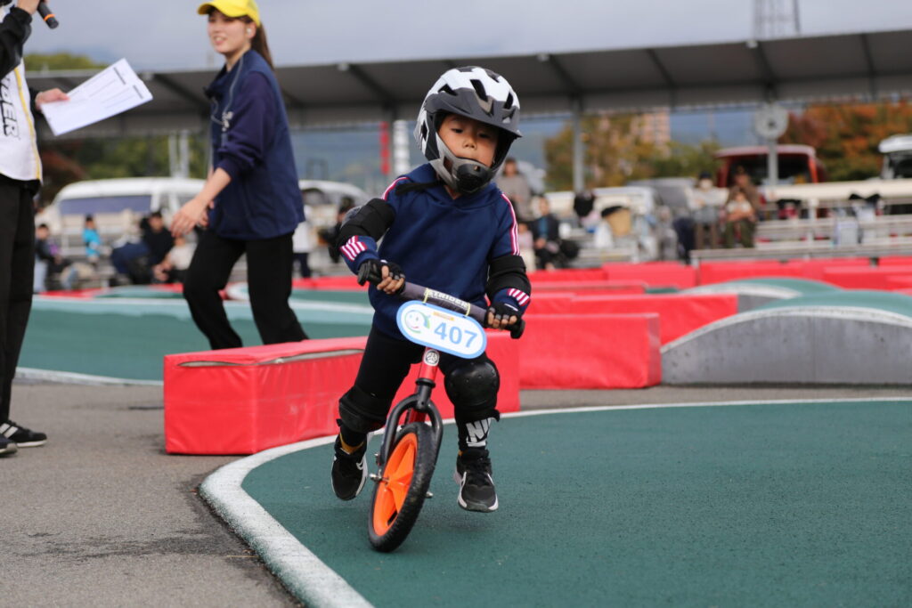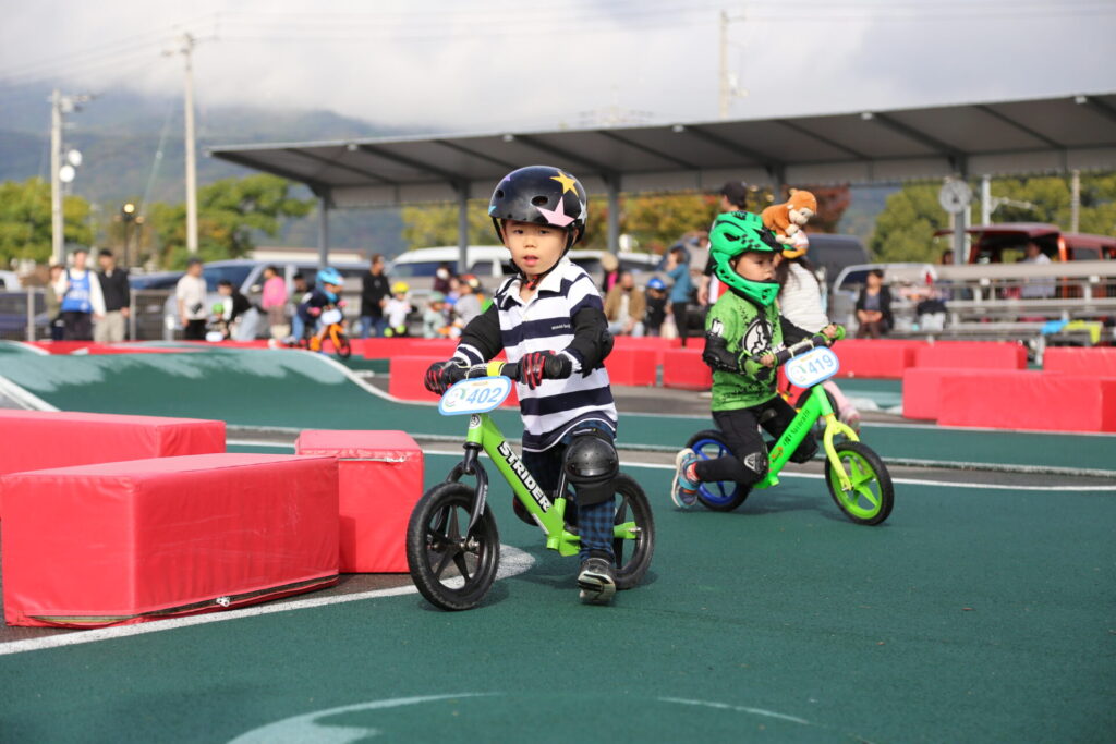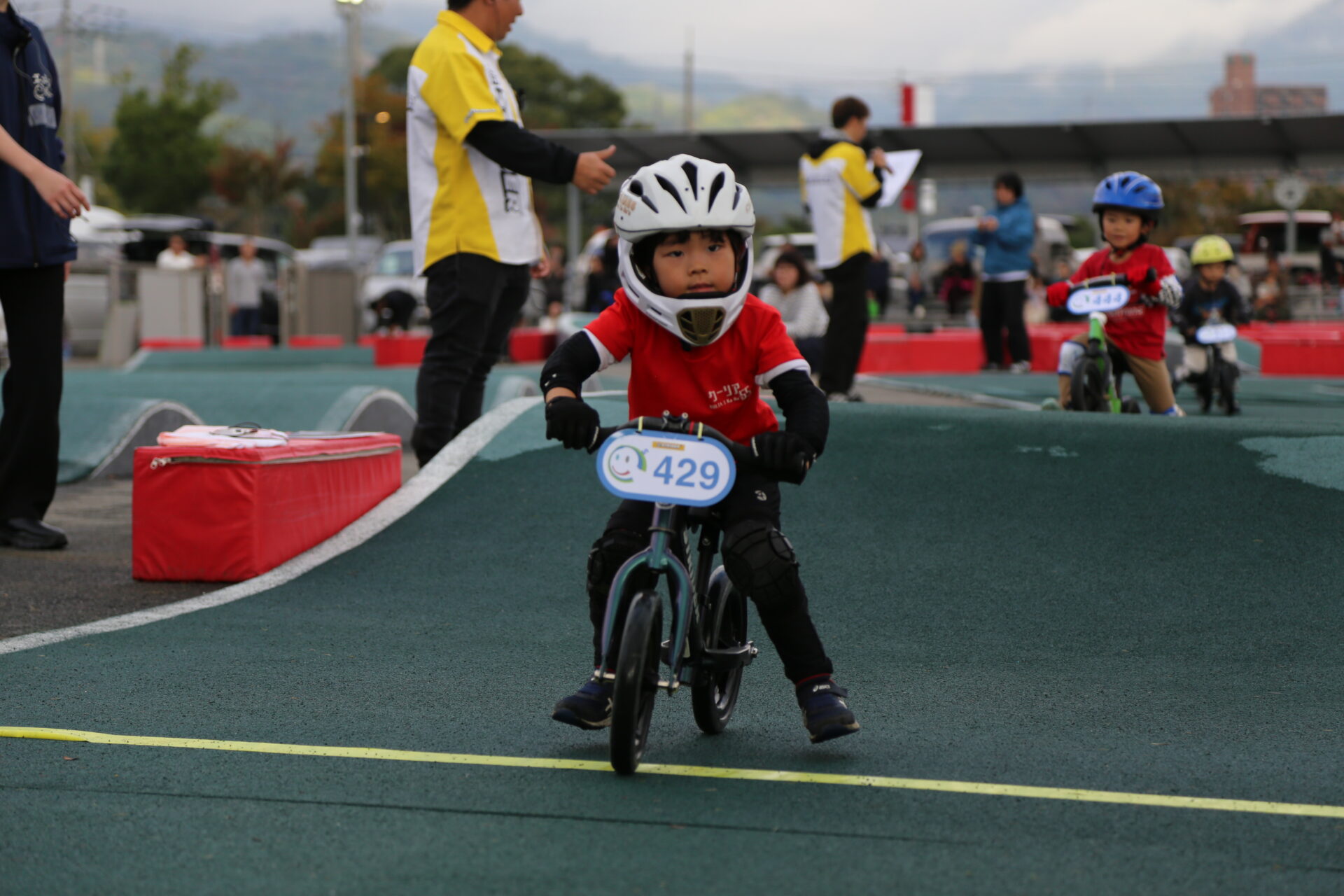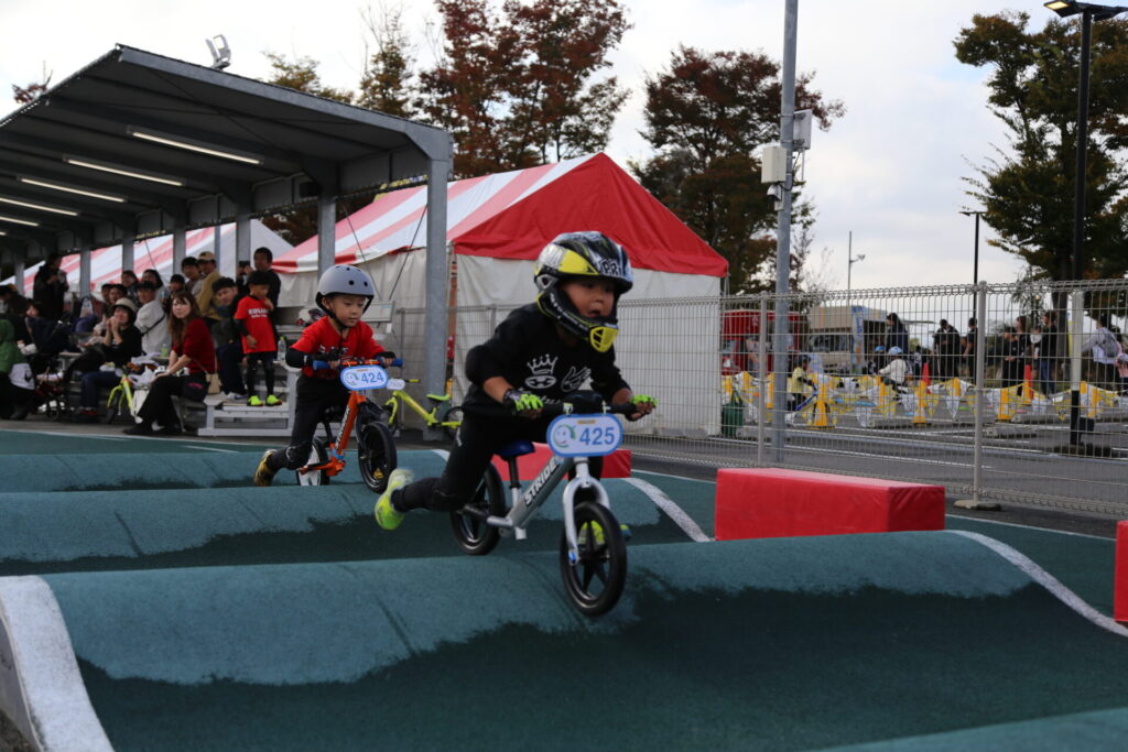 小さなハンドルをぎゅっと握って、「レディ、セット、ゴー!」。最初のひと蹴りをみんなで応援し、笑顔があふれた時間。会場いっぱいに「がんばれー!」の声が響きました。