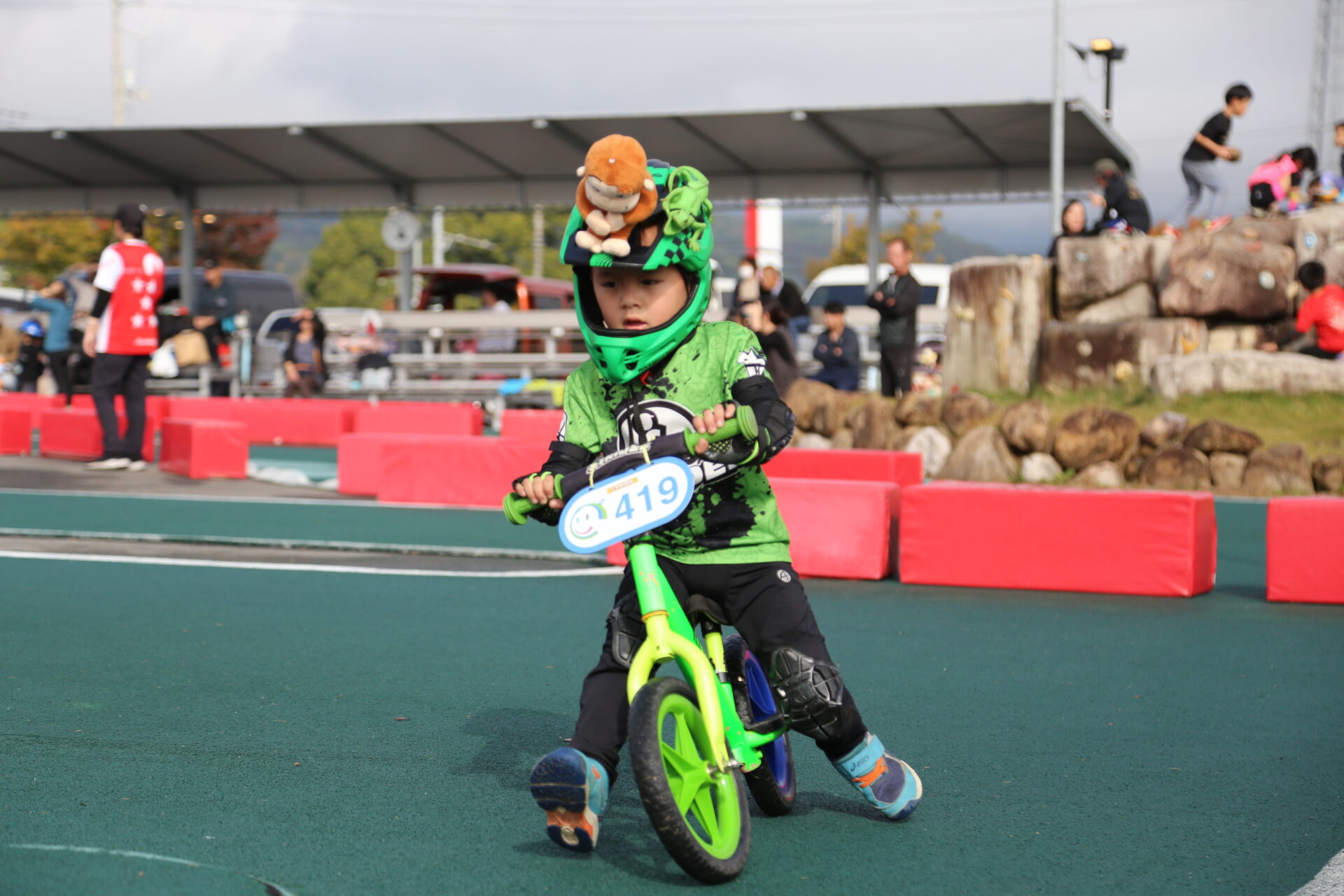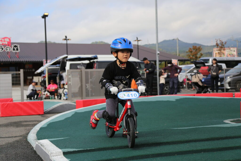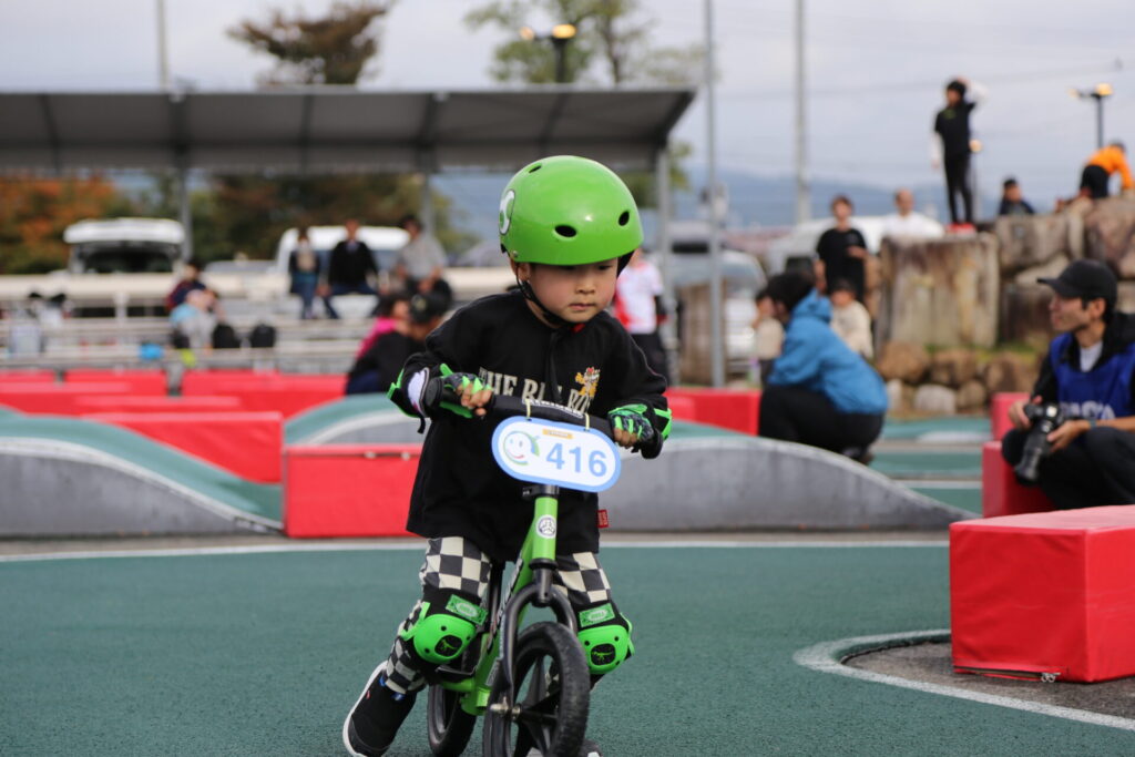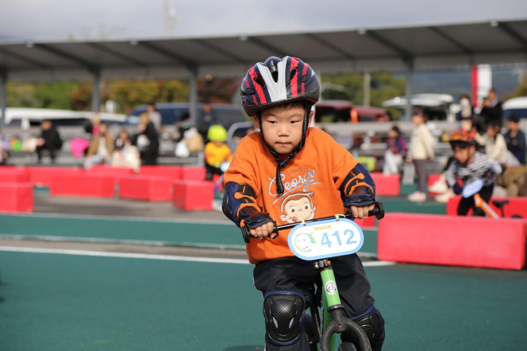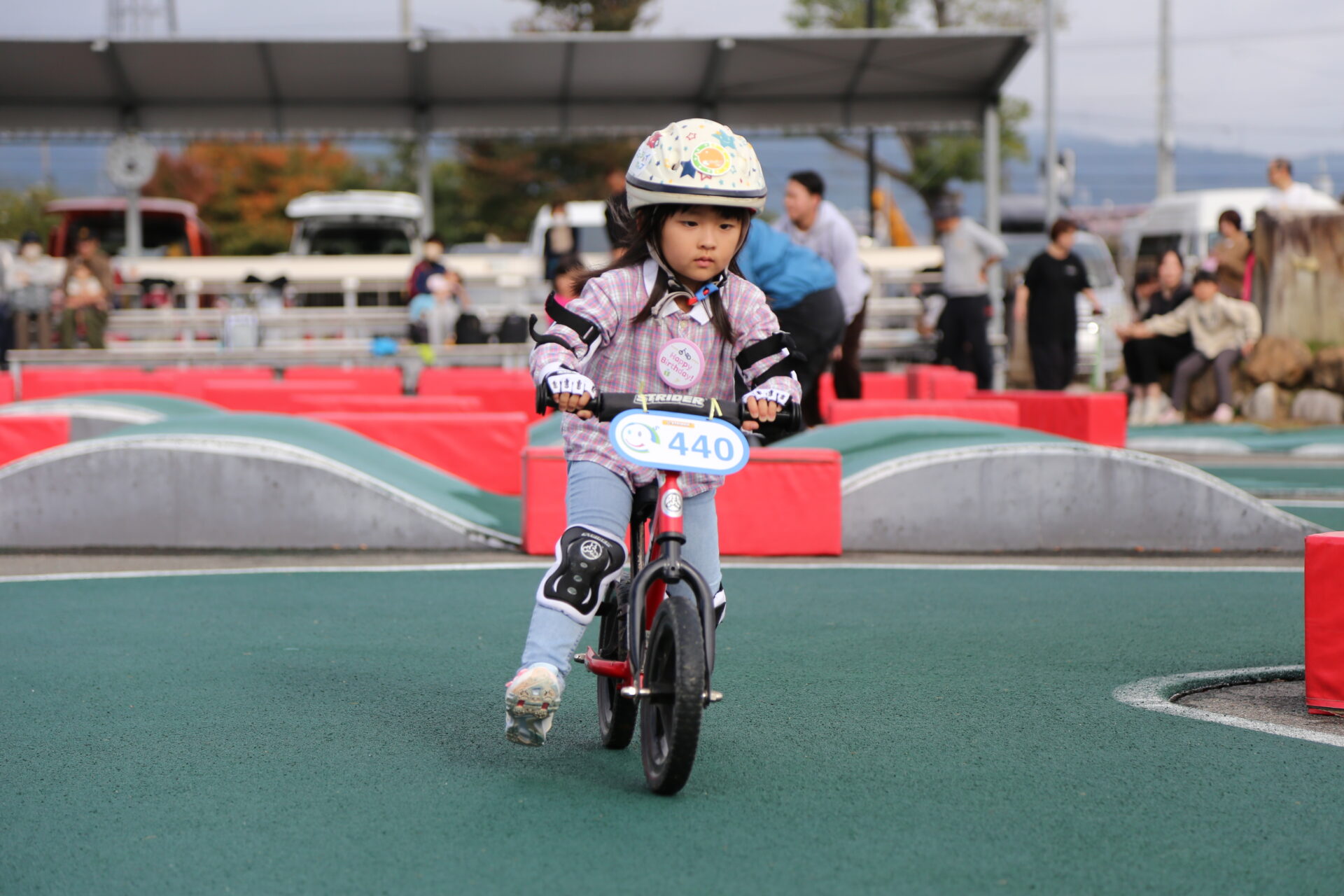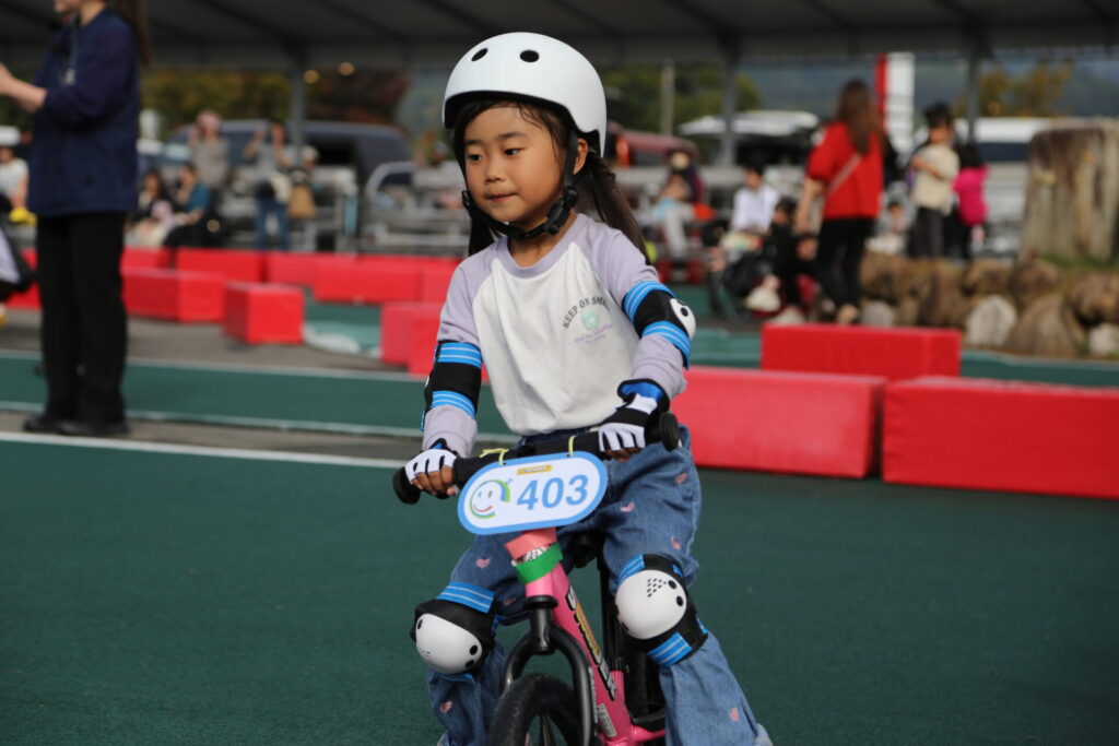 「レディ、セット、ゴー!」の合図とともに、小さな体で一生懸命にけり出す姿が印象的でした。フード越しの真剣なまなざしと、走り切ったあとの笑顔。初めての挑戦が、この日の主役でした。