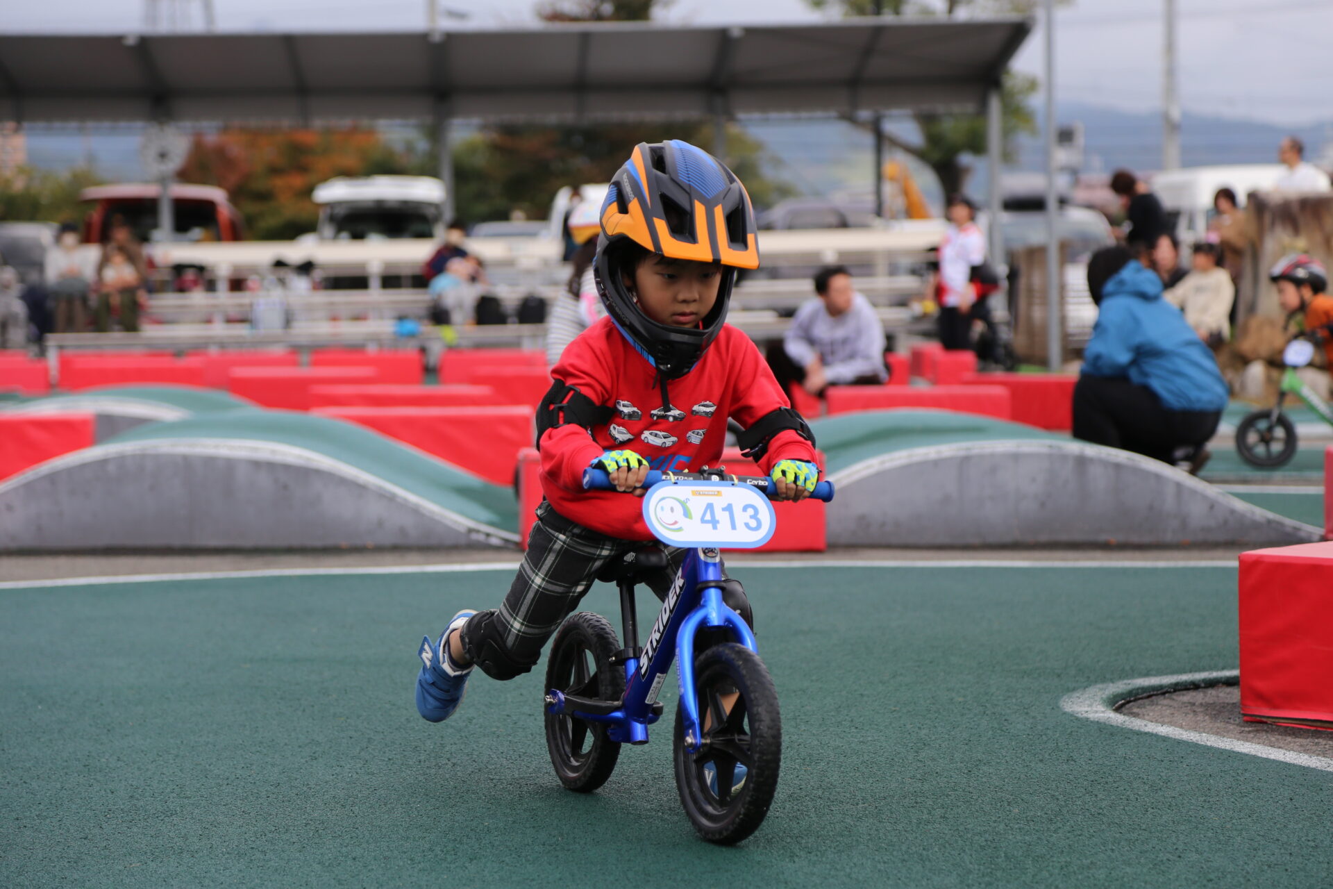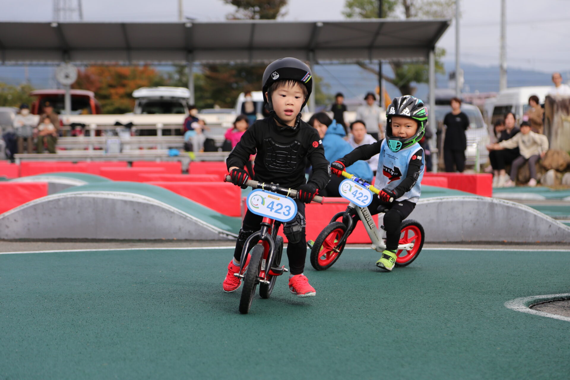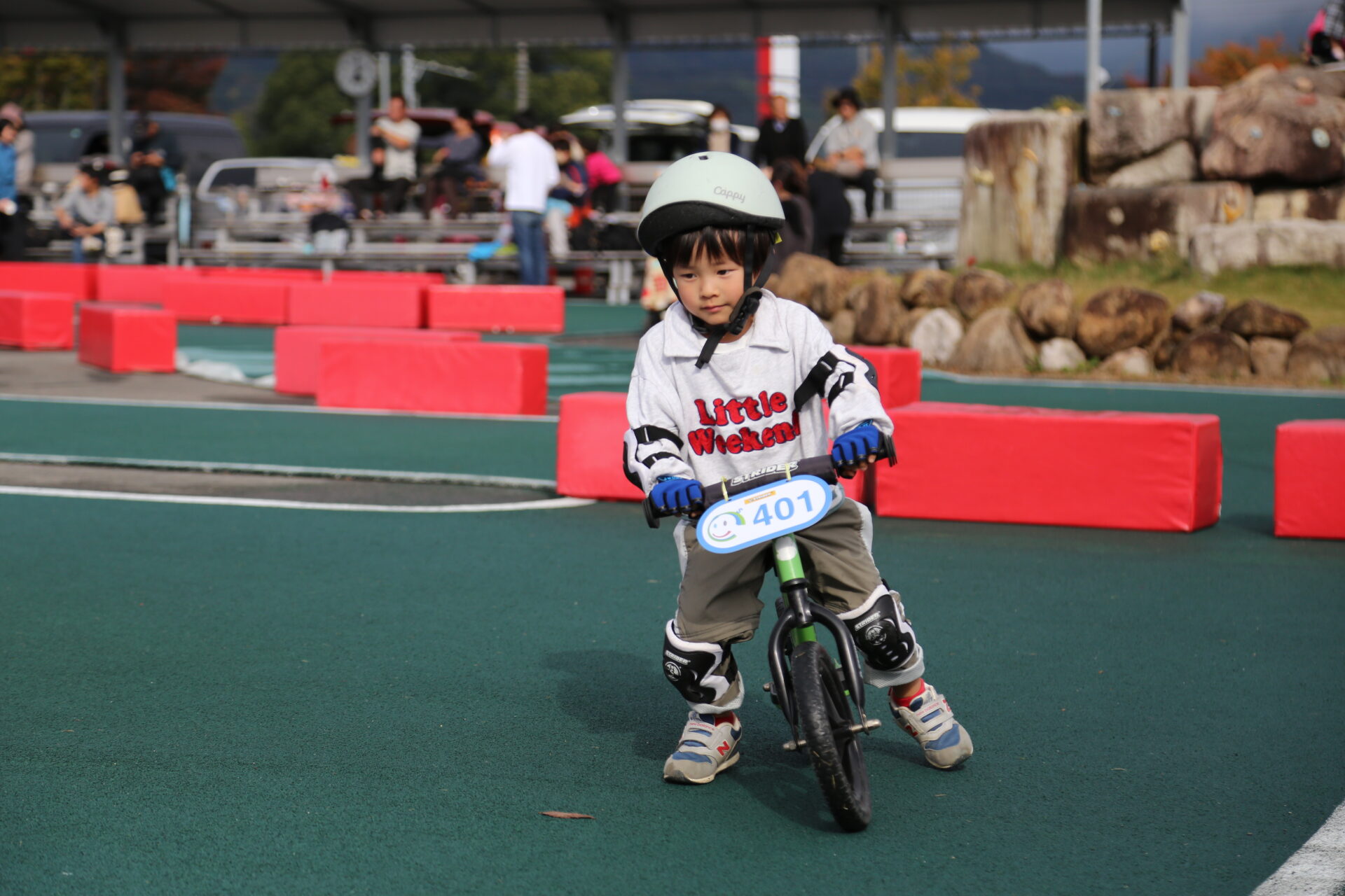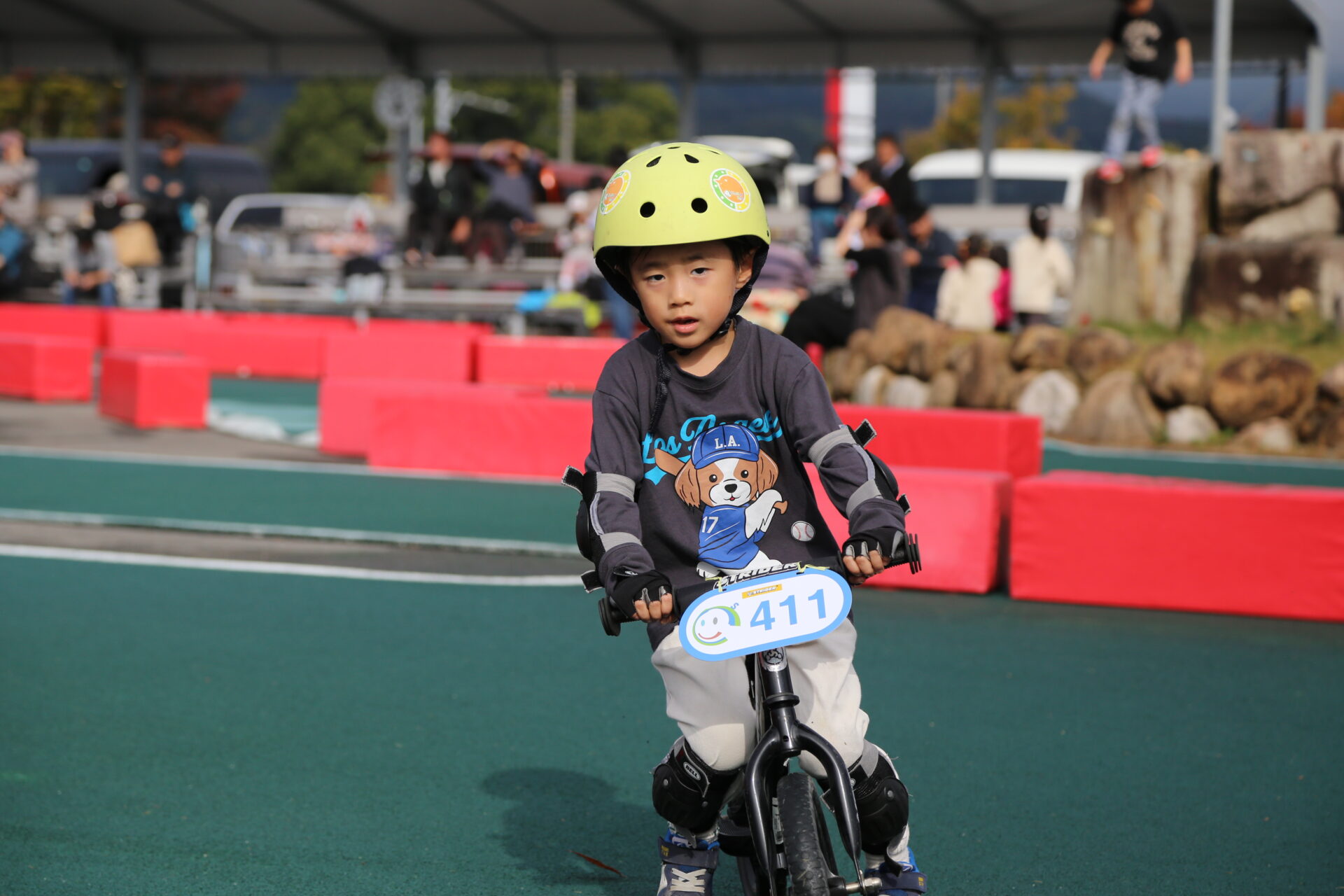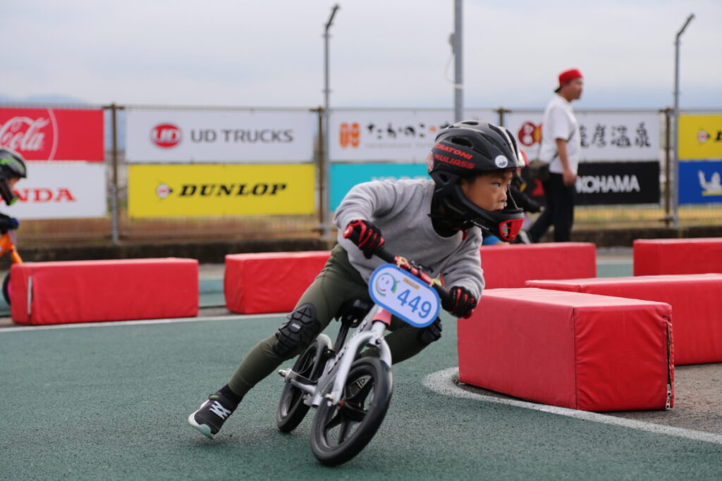 「レディ、セット、ゴー!」の合図とともに、小さな体で一生懸命にけり出す姿が印象的でした。フード越しの真剣なまなざしと、走り切ったあとの笑顔。初めての挑戦が、この日の主役でした。