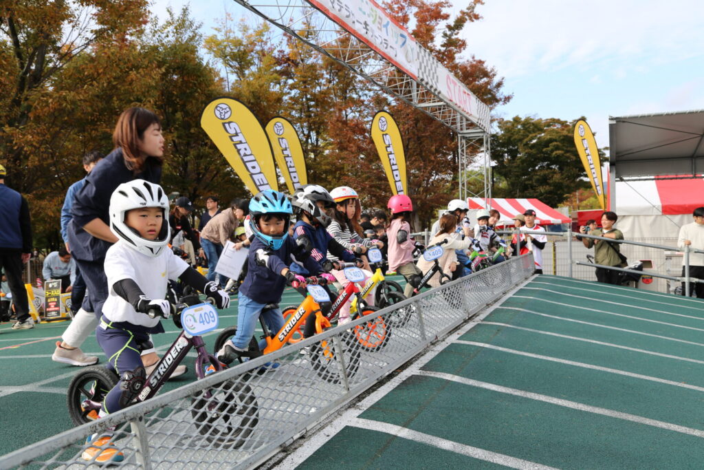会場横の駐車場に特設コースを設けて「レディ・セット・ゴー体験」を開催。まだレースに出たことがないお子さまも、ストライダーの楽しさを感じながらスタート体験!