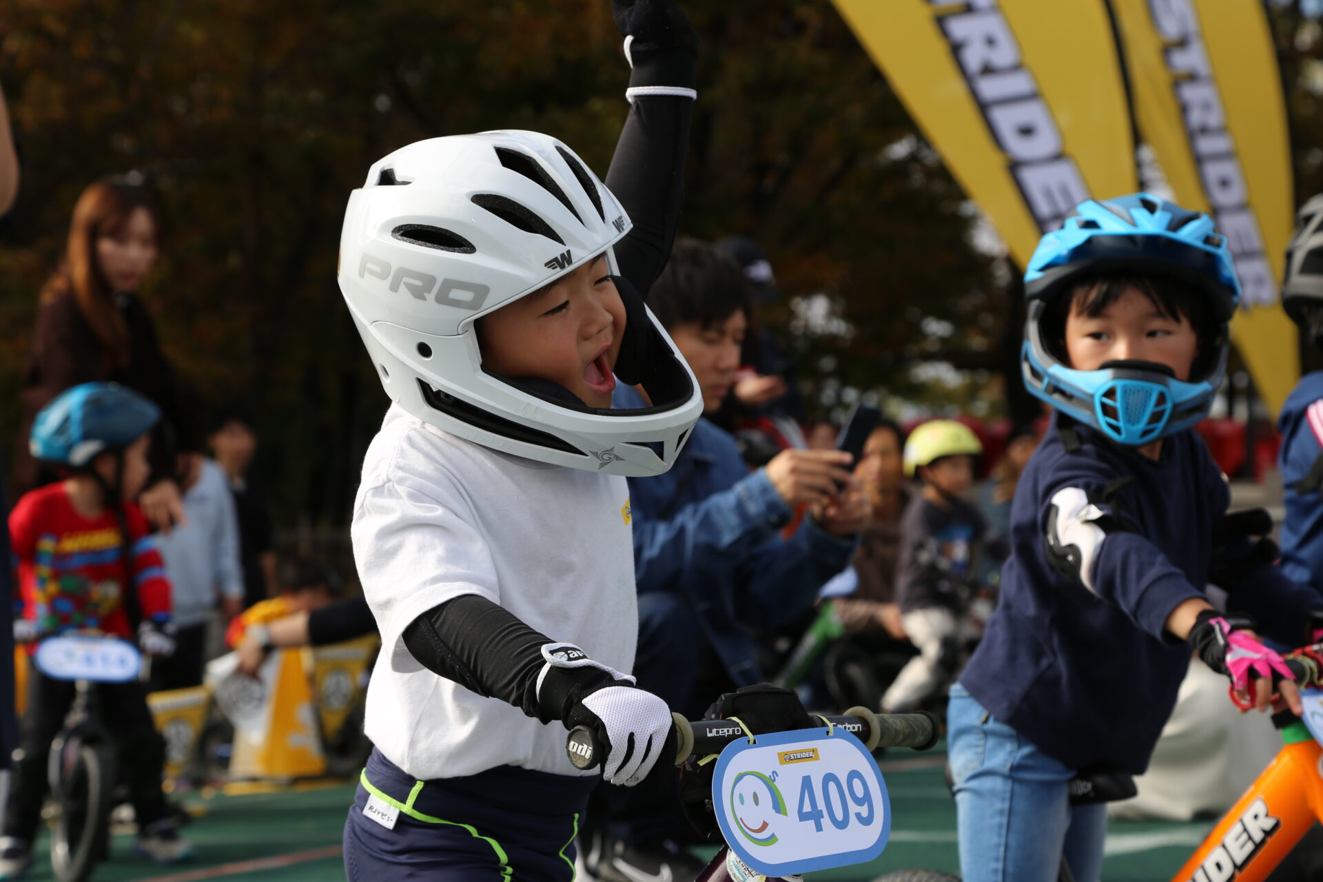 1周目はストライダーを使わずに「走る」、2周目はストライダーで走る、そして3周目はペダルをつけて本格ライド。段階を追うごとにスピードと笑顔が増えていきました。