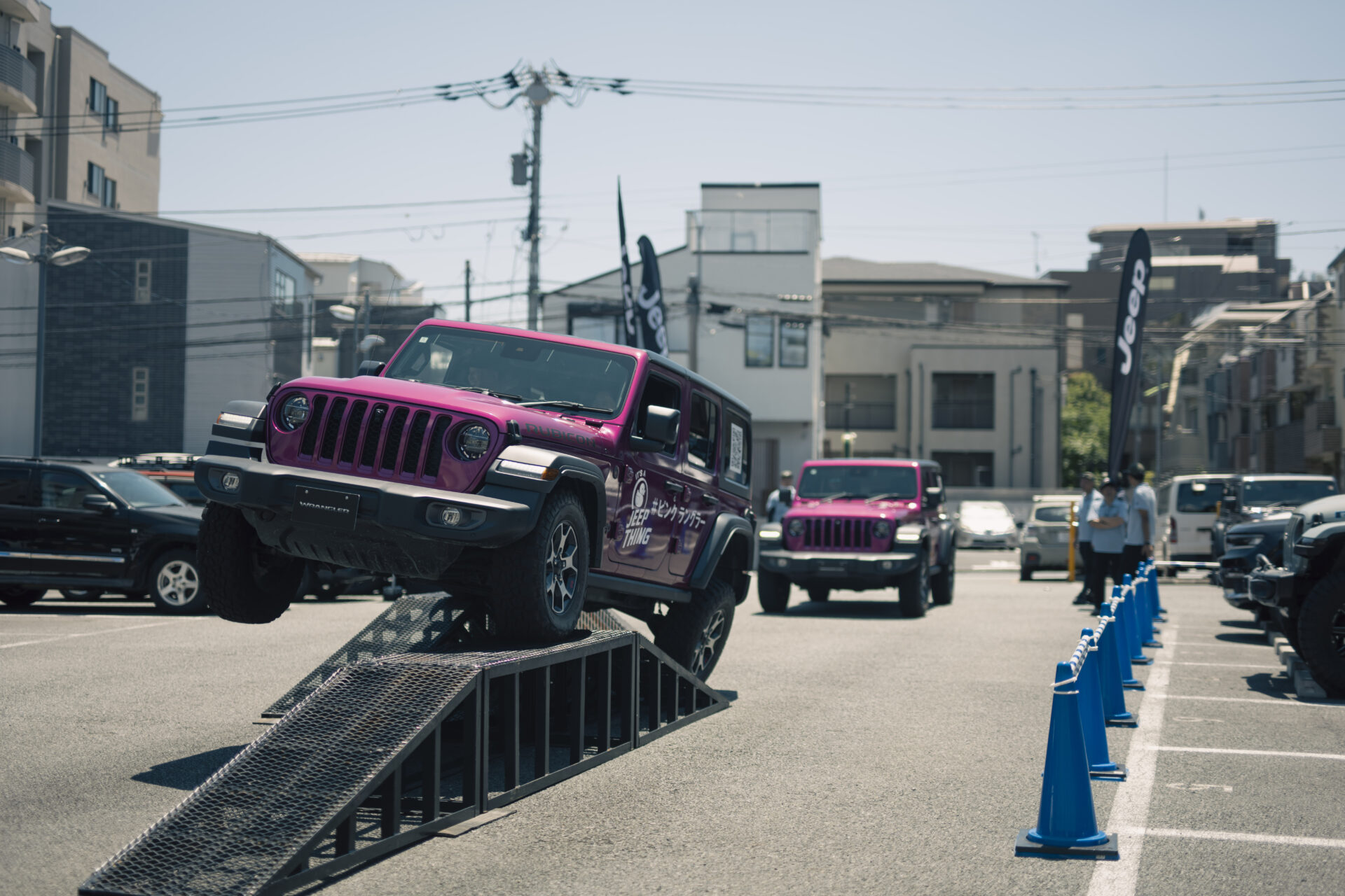 先頭車にJeep Duckを載せたピンクのWrangler(ラングラー)3台が全国を周り、