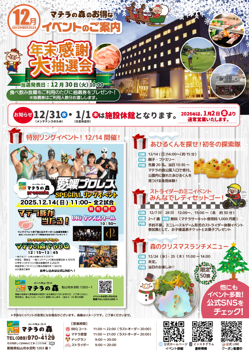 日頃のご愛顧に感謝をこめて、マテラの森では年末限定の大抽選会を開催。