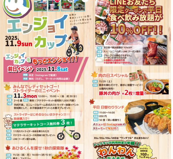 2023年3月イベントのご案内 マテラの森-スタッフ 2023年2月23日 マテラの森にも梅の花が咲き始め、待ちわびていた春の訪れを少しづつ感じることができるようになりました。さて、マテラの森3月のイベントのご案内です🧡毎年恒例のドライブインシアターに、初の豚のひな寿司販売など、今月も盛りだくさんのイベントとなっております🎉4月にはマテラカップスプリングステージも開催されます🤗なので、ちびっこライダーのみんなは、3月もたくさん練習にきてね! イベント情報