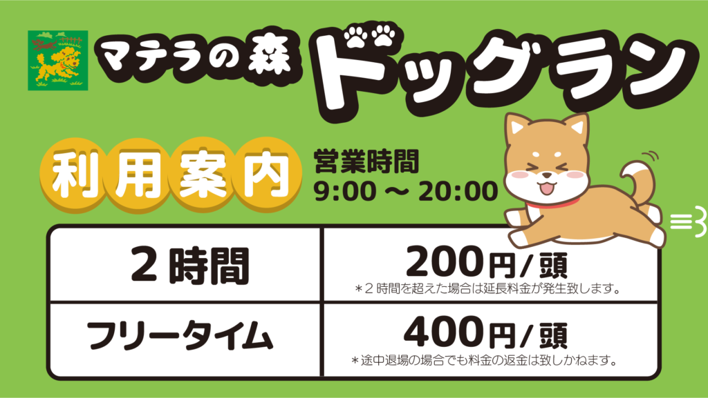 マテラの森で時間を気にすることなくゆっくりと、わんちゃんと過ごしたいという飼い主様からの貴重なご意見をいただきまして、導入を決定いたしました。